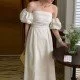 Korean Chic Pure Color Puff Sleeve Dress