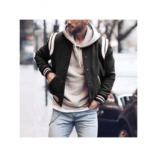 Preppy Striped Men's Long Sleeve Baseball Jacket